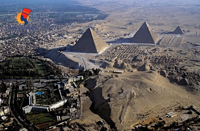 - Arrivée au plateau de Gizeh pour la visite des Pyramides de Khéops, Khéphren et Mykérinos, du Sphinx et du Temple de la Vallée.